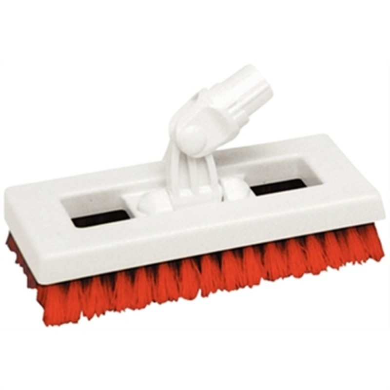 Deck scrubber with tough polypropylene base and stiff bristles.