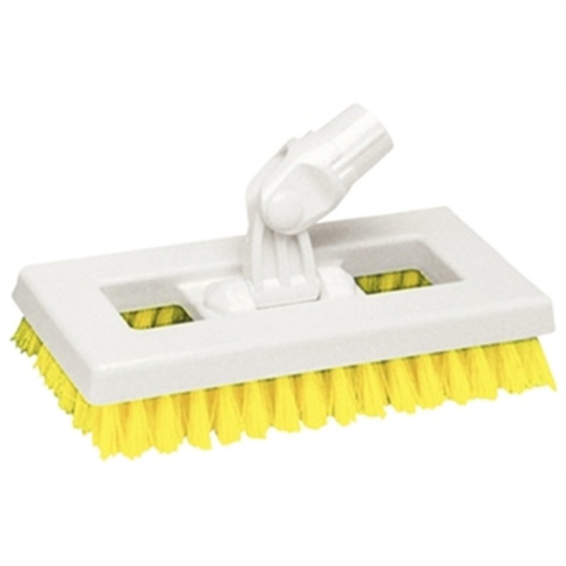 Deck scrubber with tough polypropylene base and stiff bristles.