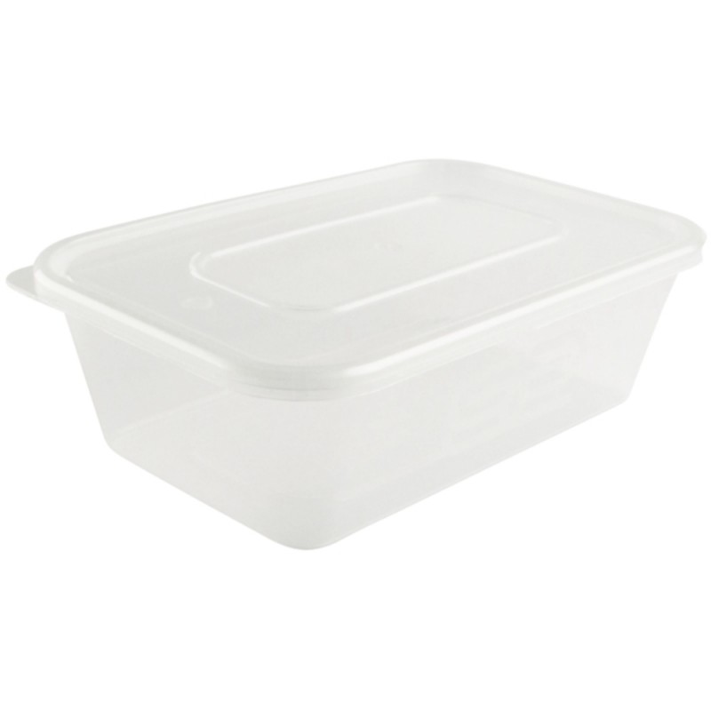 Microwavable medium sized plastic containers with snap-on lids included ideal for takeaways or food storage. They are also heavy duty freezer safe and reusable.