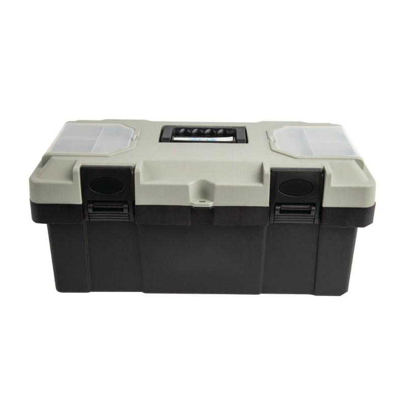 This large Vogue knife box is made from a tough plastic construction with a lift out tray foldaway handle and clasp fastening just what you need to keep all your knives safe and easily accessible.