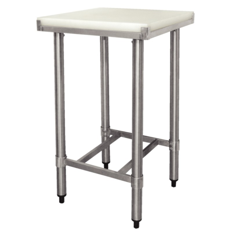 Integrated HDPE chopping board unit with reversible high density 35mm chopping board. Stainless steel frame.