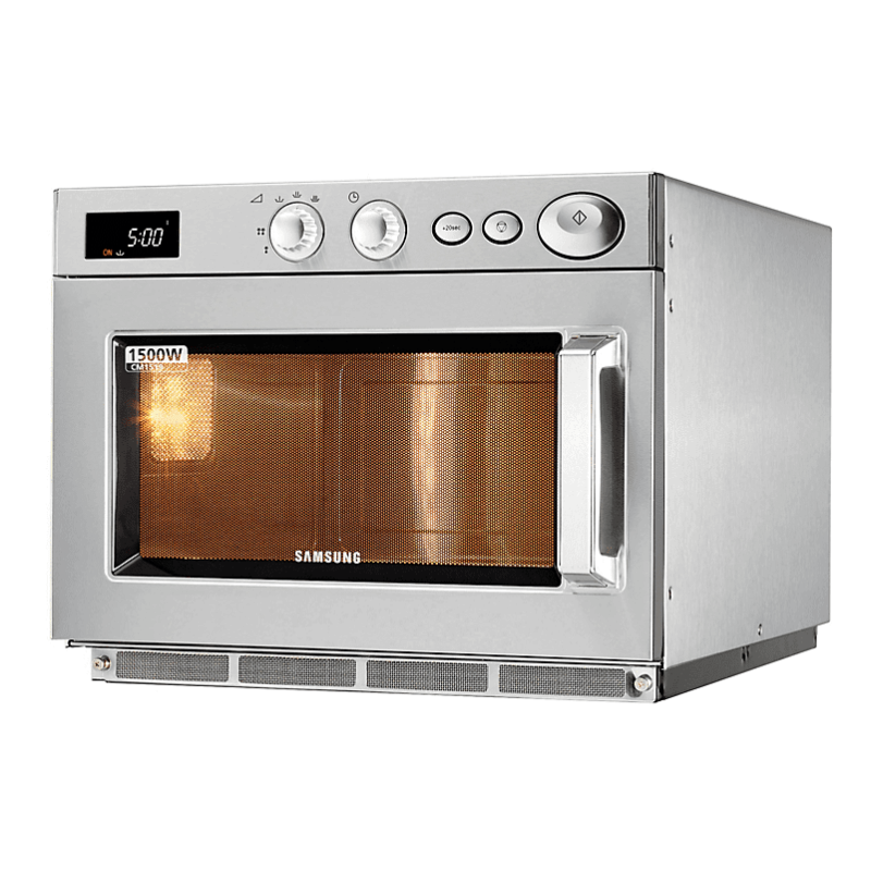 The Samsung CM1519XEU 1500w Microwave Oven is a medium duty commercial microwave from our best selling brand Samsung. It has a great range of useful features including easy to use dials and manual controls. It is easy to clean highly reliable and ideal for use in pubs restaurants canteens and hotels.