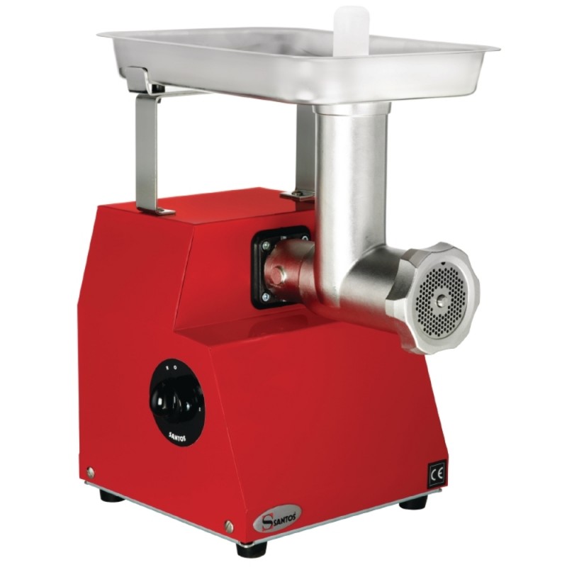 The heavy duty Santos 12-12 Meat Grinder features a robust easy to clean stainless steel construction and a highly reliable highly powerful asynchronous motor. Perfect for use on any all kinds of meats the Santos meat mincer is able to produce a variety of consistencies including coarse medium and fine thanks to its variety of mincing discs. Ideal for the production of hamburgers sausages and pts this electric meat mincer is clearly of outstanding quality.