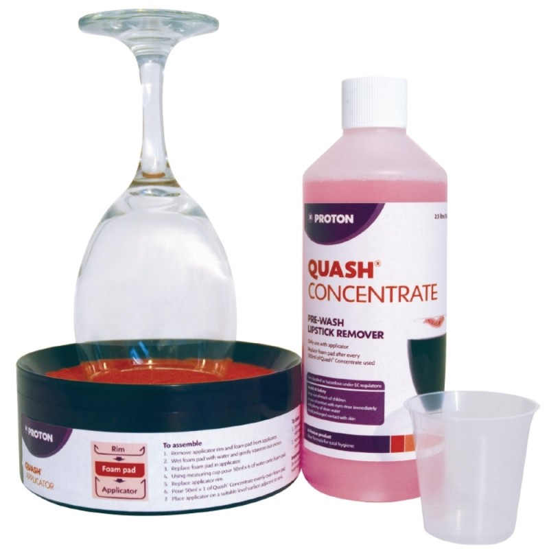 Cleaning kit to remove lipstick and other grease stains from glassware. Suitable for all types of glasses this is a quick solution to an unsightly problem and saves time and money. Pack contains 500ml of concentrate one foam pad one applicator and one measuring cup.