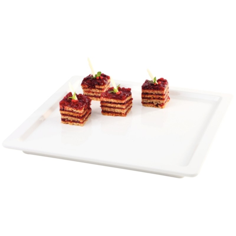 From the APS's Apart range comes this modern and contemporary white 13" square shaped melamine buffet tray which will showcase tapas seafood sushi and other appetisers in a striking yet appealing way.