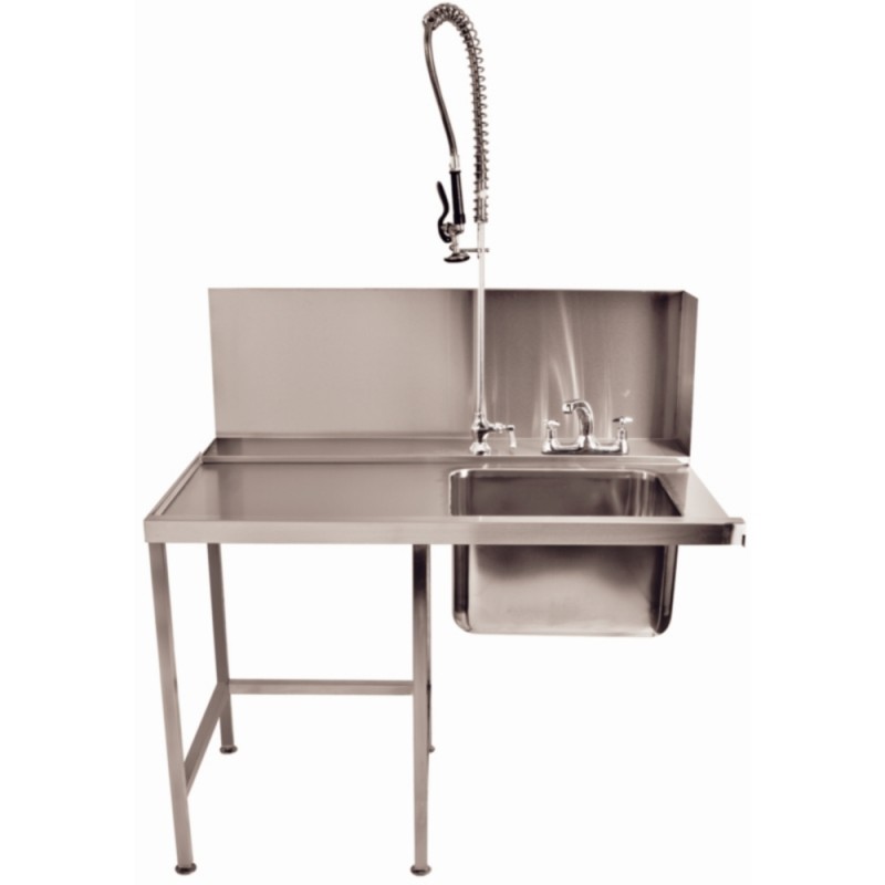 1100mm high pass-through inlet table with sink bowl splashback left hand pre-rinse spray and mixer taps.
