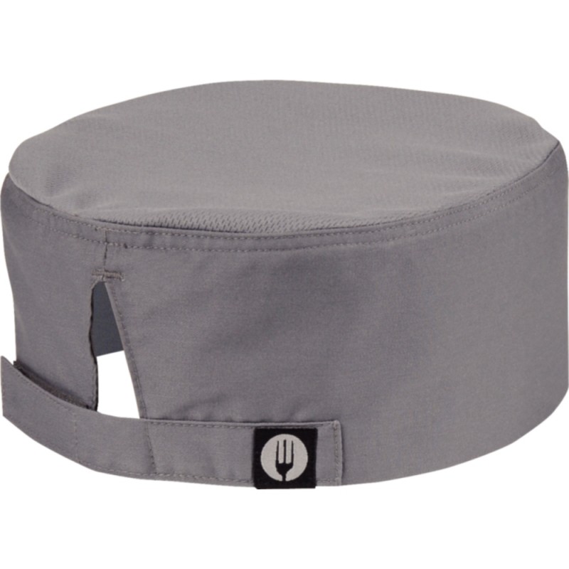Lightweight twill fabric grey beanie by Chef Works features a Cool Vent top which encourages air circulation keeping your head cool in the kitchen. Adjustable Velcro closure at the back means it can fit any sized head perfectly.