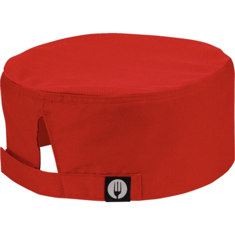 Lightweight twill fabric red beanie by Chef Works features a Cool Vent top which encourages air circulation keeping your head cool in the kitchen. Adjustable Velcro closure at the back means it can fit any sized head perfectly.