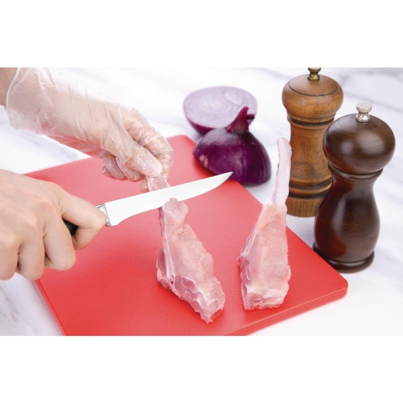 This Vogue soft grip boning knife has a high carbon stainless steel blade for a lasting and superior cutting performance. Featuring a durable wide bolster meaning the knives are perfectly balanced and weighted and a soft ergonomically designed handle. This knife is not recommended for dishwashing.