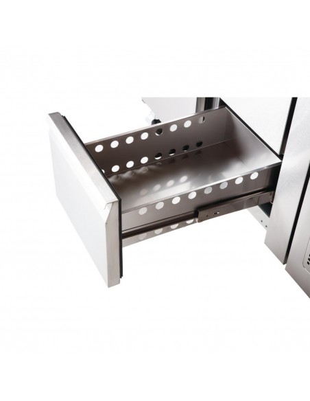 A space efficient commercial counter unit which can provide extra storage space as well as a worktop for food preparation. Comes with two stainless steel drawers with a capacity of 150mm deep gastronorm 1/1 pans. The electronic display is perfect for easy monitoring and operating of the fridge.