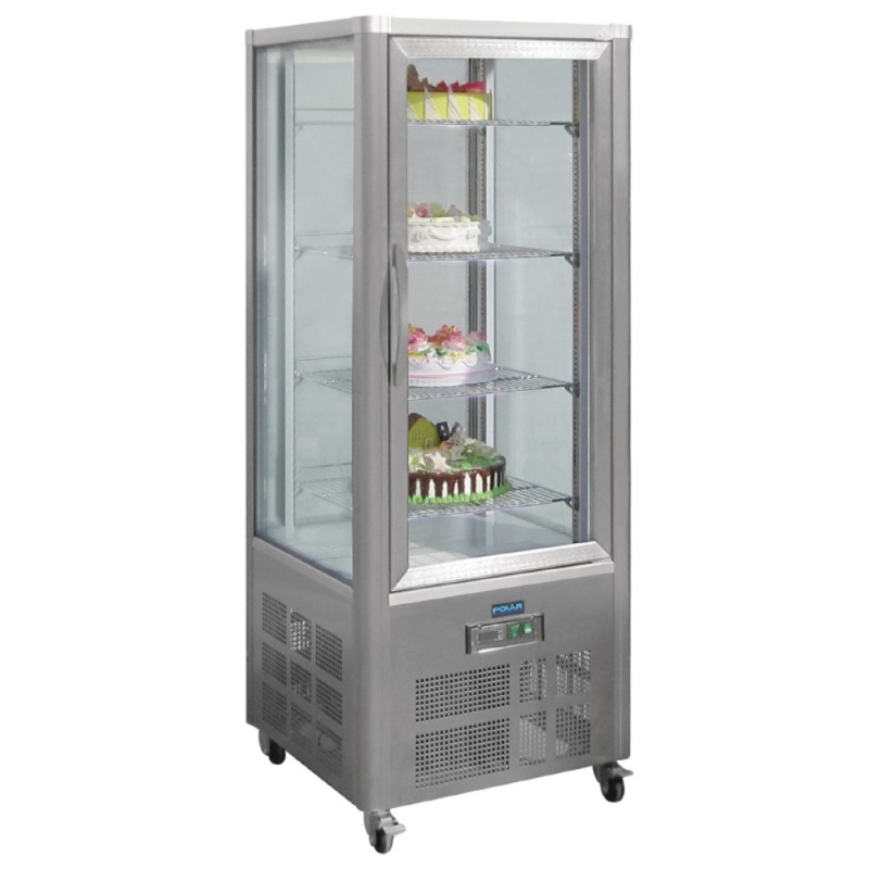 280W Stainless steel finish R290 An attractive and stylish patisserie display in a stainless steel finish. Four sided display to show off cakes pastries and desserts. Fully automatic controller with constant digital display and auto defrost.