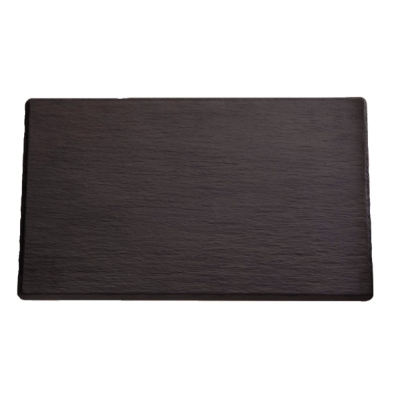 APS melamine platter perfectly imitates that of slate and is an attractive presentation board for cheeses chocolates pastries and meat. It is a very durable product featuring non- slip feet and is dishwasher safe.