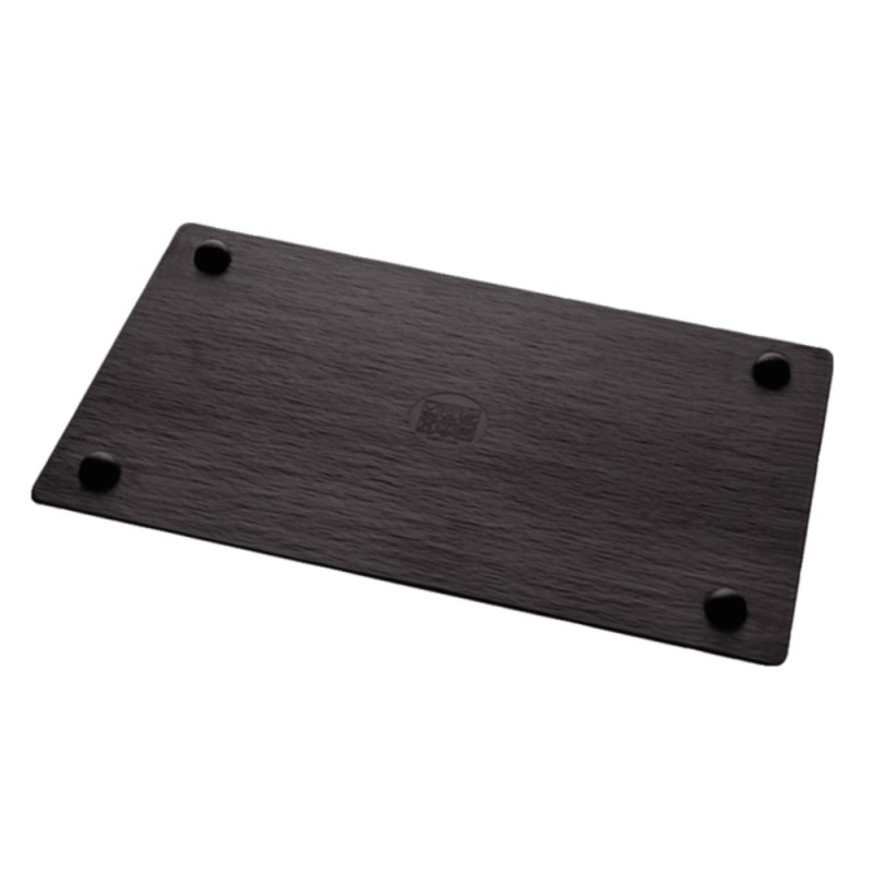 APS melamine platter perfectly imitates that of slate and is an attractive presentation board for cheeses chocolates pastries and meat. It is a very durable product featuring non- slip feet and is dishwasher safe.