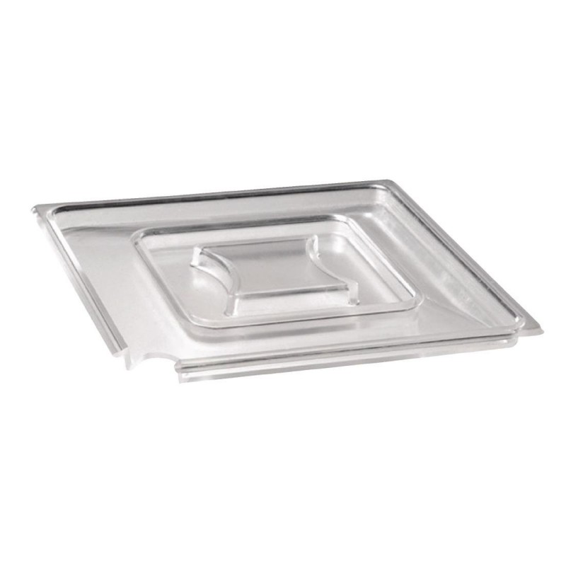 Elegant melamine APS clear square SAN cover perfect to go with the Float range with a distinctive base which gives the impression of floating at the edge of the table. Clear edges and smooth surfaces are combined with durability to achieve a timeless and classic appearance.