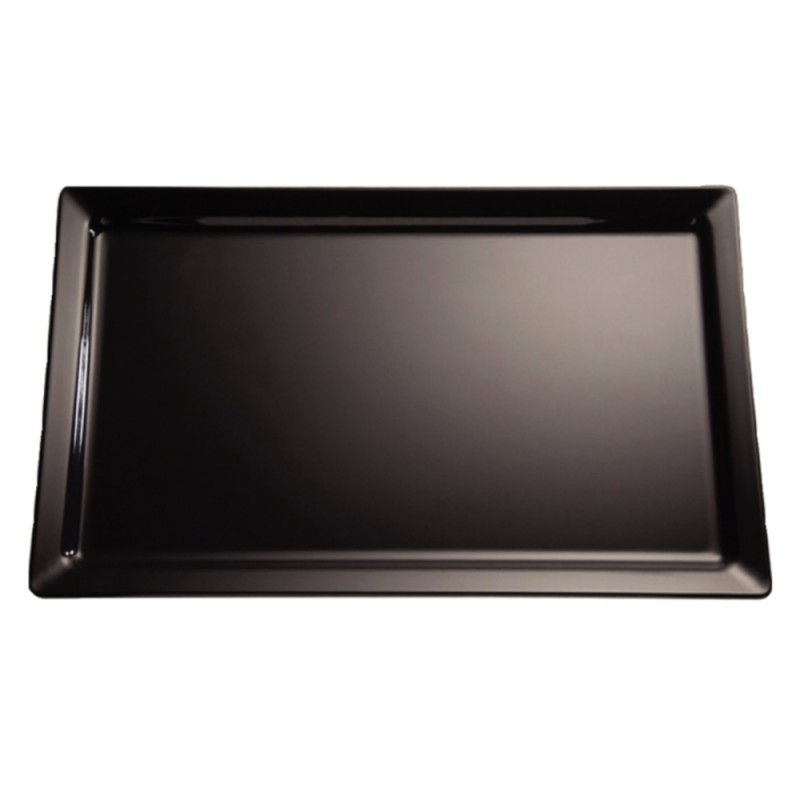 APS Pure range features premium presentation surfaces with straight outer edges and small corners creating an elegant feel. This black 1/4 GN melamine tray is ideal for displaying food for buffet service and other events.