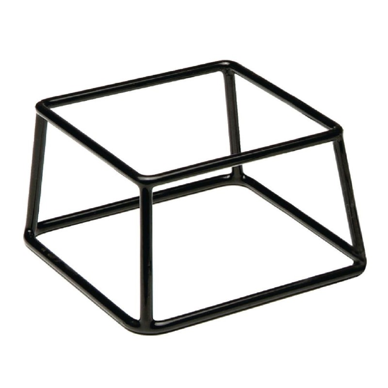 APS stackable multi-purpose medium height metal buffet stand featuring an anti-slide coating making them secure items for holding round and square trays to present food in an attractive way.