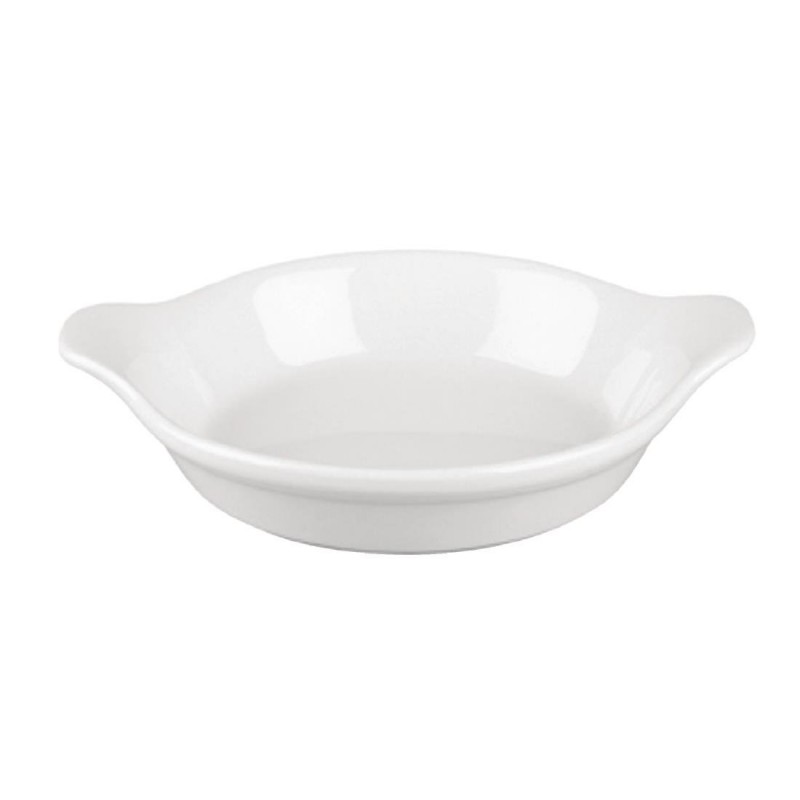 Specifically designed to withstand the rigours of the busy catering environment this readily available range of attractive oven-to-tableware 5x 6" mini round-eared dishes by Churchill are durable and chip resistant offering excellent heat retention properties.