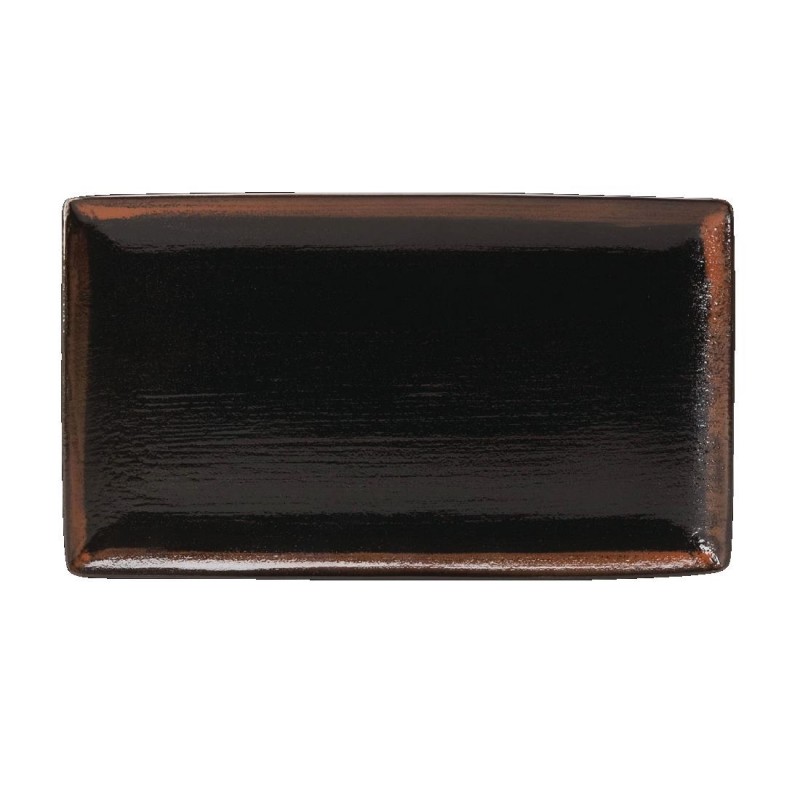 The perfect canvas on which to present Eastern and Asian dishes the dark dramatic design of this Koto rectangular platter embodies the craft of the traditional potter and takes inspiration from ancient Japanese Tenmoku glazes. The platter combines presentation with practicality providing a smart functional and striking crockery solution for fine dining restaurants cafs and hotels. Designed to withstand the trials of daily use in the professional catering environment this extensive collection is also dishwasher oven and microwave proof.