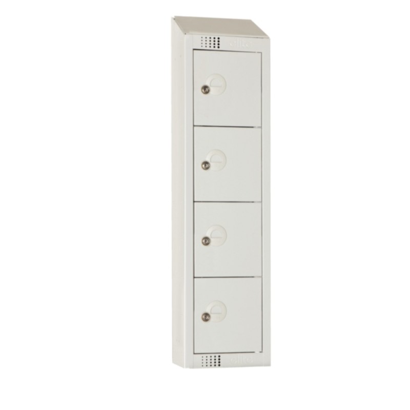 Four door lockers designed for use off floor. Anchor against a wall on a load bearing raised platform. Ideal for the storage of all personal effects including watches personal jewellery wallets purses and mobile phones.Internal dimensions: 166x 135x 180mm