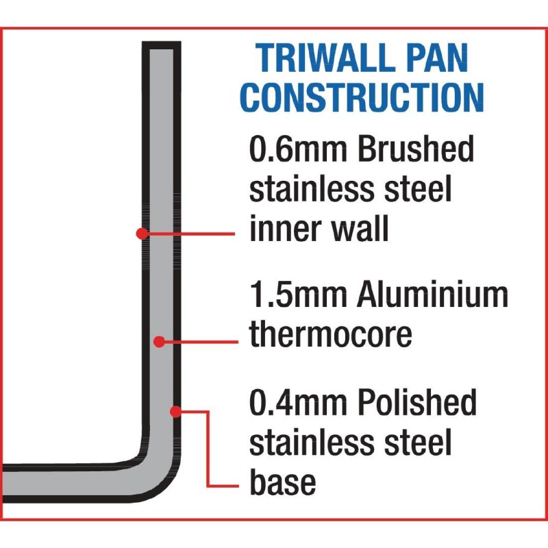 Innovative aluminium thermocore sandwiched between stainless steel walls provides even heat distribution without hotspots for great performance. Hardwearing mirror polished exterior with brushed finish interior. 100mm(W)X100mm(D)X58mm(H) with a capacity of 0.44L.