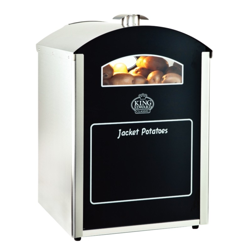 The high capacity fan assisted King Edward Bake-King Potato Oven Stainless Steel features a highly attractive transparent door perfectly displaying your tasty products to your customers. This oven can be used as a counter-top or back-bar piece and comes as standard with a variety of features including a glass menu display easy clean interior and illuminated oven and storage area. It has an excellent cost to capacity ratio and is also suitable for cooking other foods such as croissants rolls and pasties.
