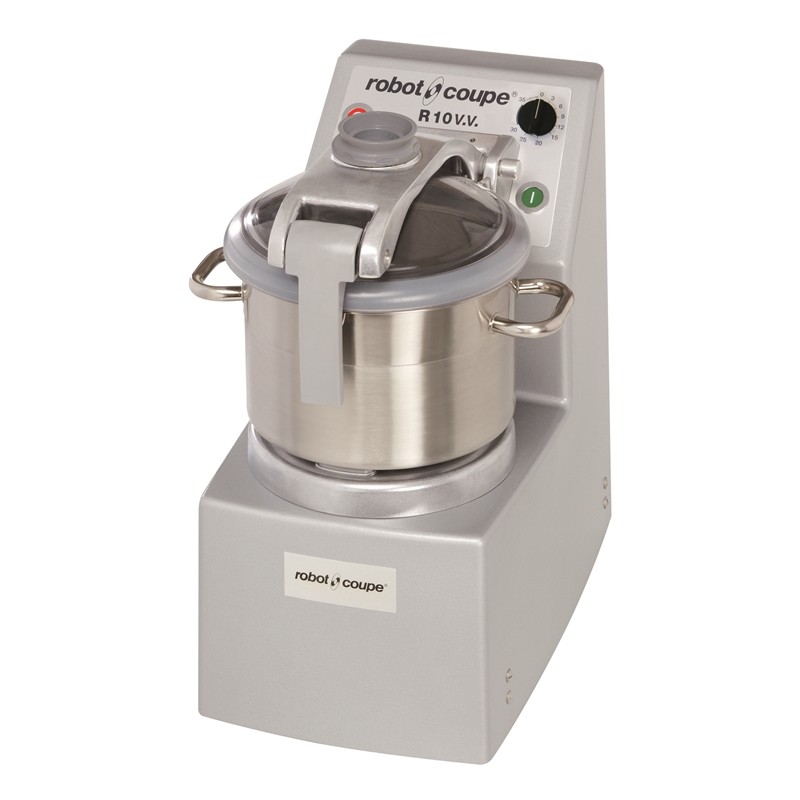 The Robot Coupe R 10 V.V. Bowl Cutter has been designed to process all types of food and will mix, grind, chop, knead and puree with speed and efficiency. A machine which offers consistent quality end products in a few minutes for the longest preparation.