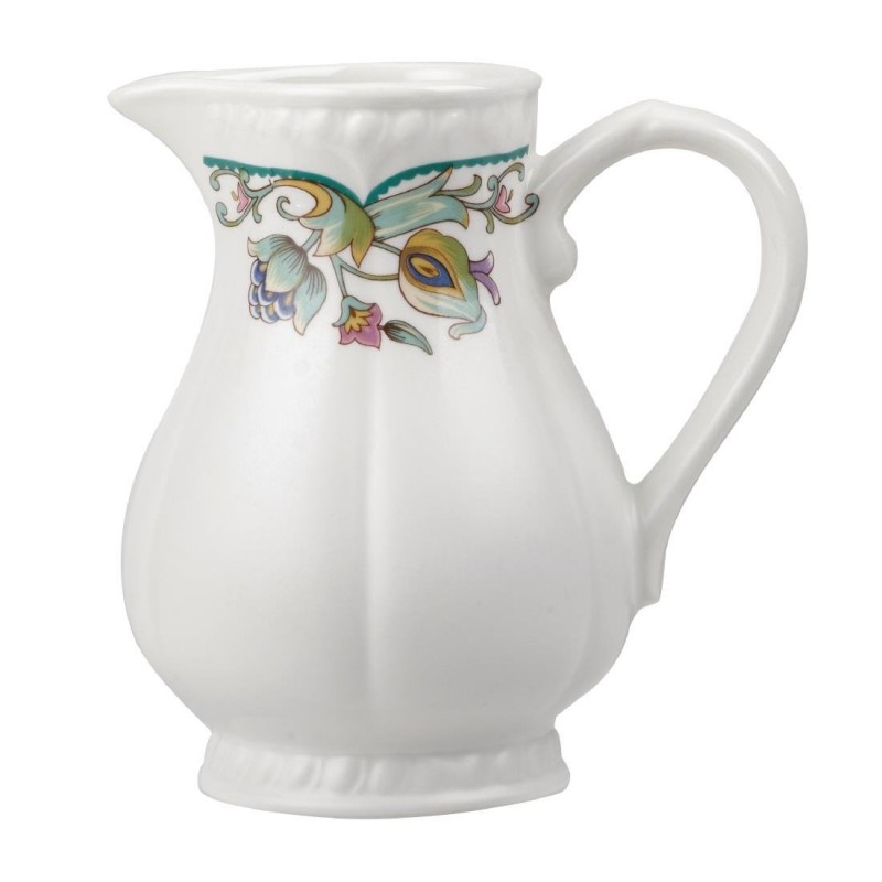 Elegant printed ½ pt jugs by Churchill with a tropical floral design featuring the delicate embossment of the Buckingham shape featuring a durable glaze which provides an ultra smooth surface for presentation.