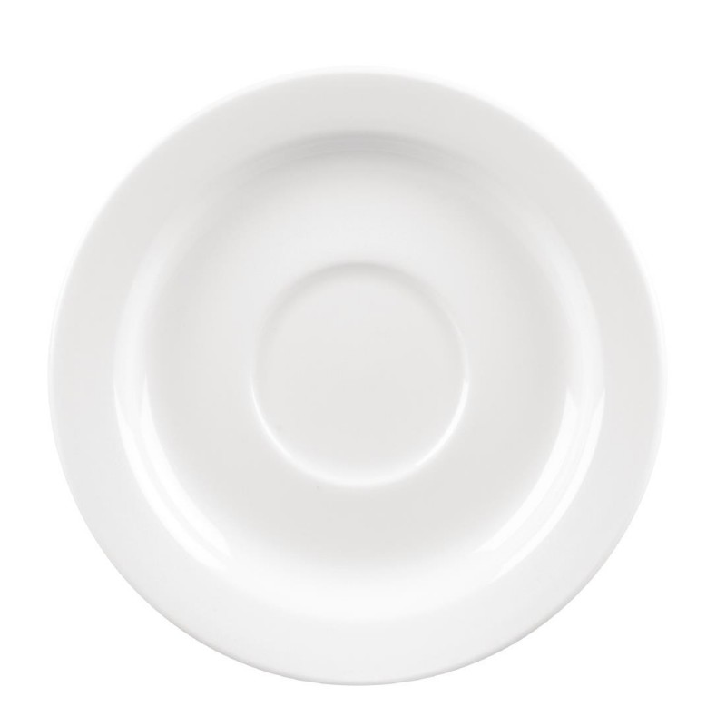 These Churchill Profile stackable 5" saucers are stylishly understated for a classic beverage service and feature a defined rolled rim for excellent durability. Protected by ecoglaze and 20% lighter than existing Classic saucers.