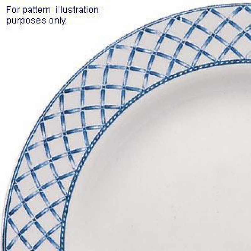 Make a statement with the blue and white trellis design of this Pavilion 11 ⅘" pasta plate from Churchill. The pattern draws the eye to the centre of the plate and creates an individual backdrop to suit any menu. The plate's vitreous body does not absorb moisture making it more hygienic and giving it better heat retention properties. Its high resistance to thermal shock helps to reduce breakages a reinforced rolled edge increases chip resistance and its superior glaze has been specially developed to resist erosion.