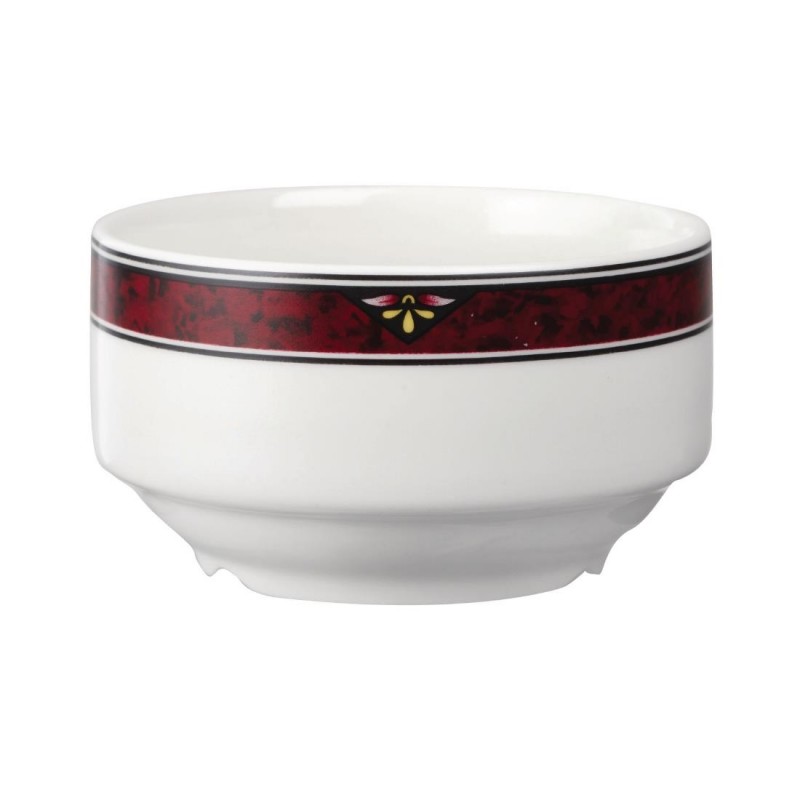 Designed for the true connoisseur these Milan range 398ml soup bowls by Churchill are patterned with a deep marbled border inset with jewelled motif and edged with a fine line available on a number of different whiteware pieces.