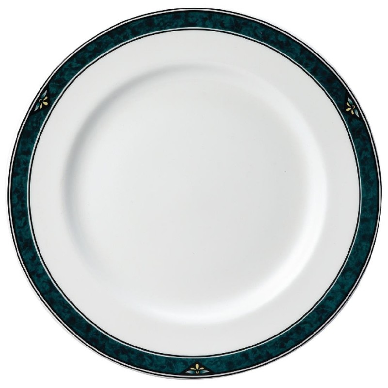 Add an air of opulence to every dining occasion with Churchill's range of Verona crockery available on a number of different whiteware pieces such as Classic. Finely designed with a deep green marbled border and jewelled motif these classical elegant 9" plates are durable with a fully glazed foot and edge.