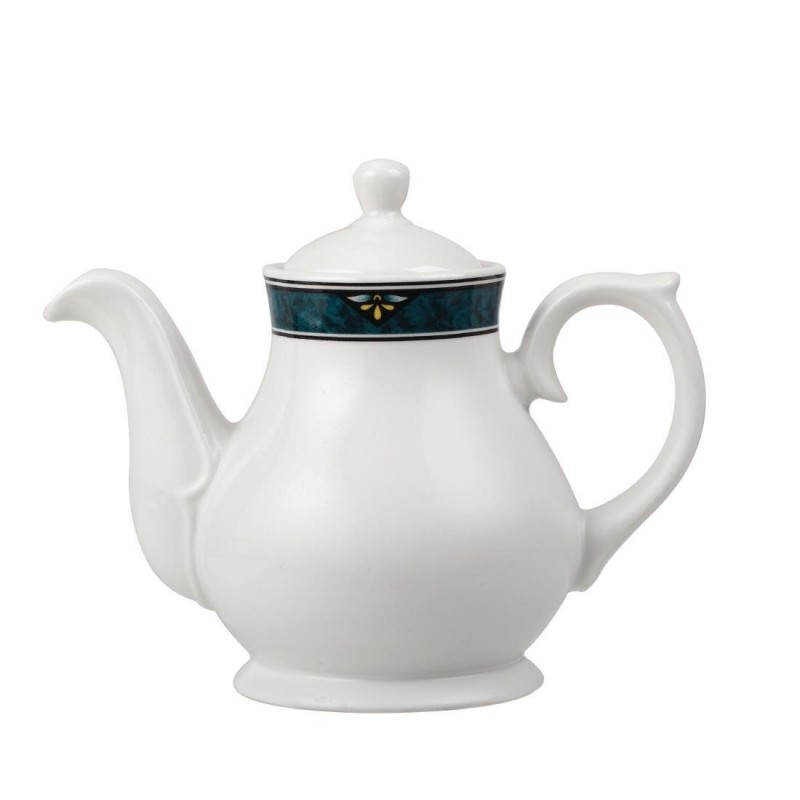 Add an air of opulence to every dining occasion with Churchill's range of Verona crockery available on a number of different whiteware pieces. Finely designed with a deep green marbled border and jewelled motif these classical elegant 426ml tea and coffee pots are durable with a fully glazed foot and edge.