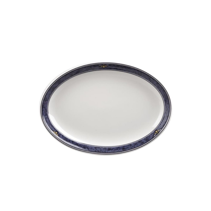 Add an air of opulence to every dining occasion with these 8" Venice oval shaped platters by Churchill featuring a fine design with a deep marbled border and jewelled motif. The crockery's high resistance to thermal shock of the vitrified body helps to reduce breakages making it ideal tableware for hotels and restaurants.