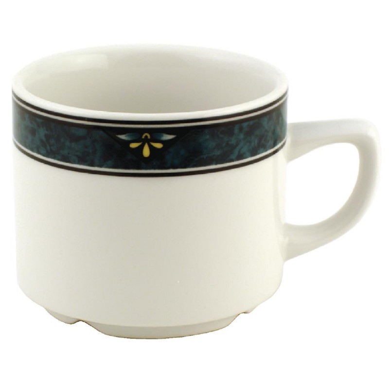 Add an air of opulence to every dining occasion with these 199ml Venice Maple cups by Churchill featuring a fine design with a deep marbled border and jewelled motif. The crockery's high resistance to thermal shock of the vitrified body helps to reduce breakages making it ideal tableware for hotels and restaurants.
