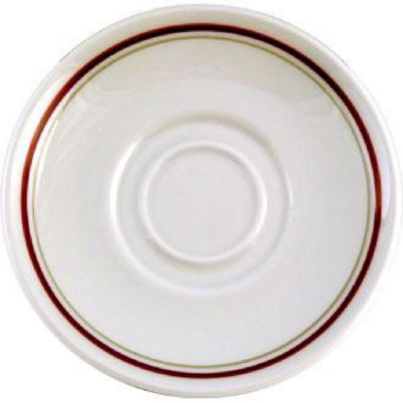 Nova collection by Churchill combines contemporary understated design with functionality and durability combined with Clyde a simply designed elegant edging of contrasting maroon and grey bands. These 5" saucers have a vitreous body which does not absorb moisture making them more hygienic.