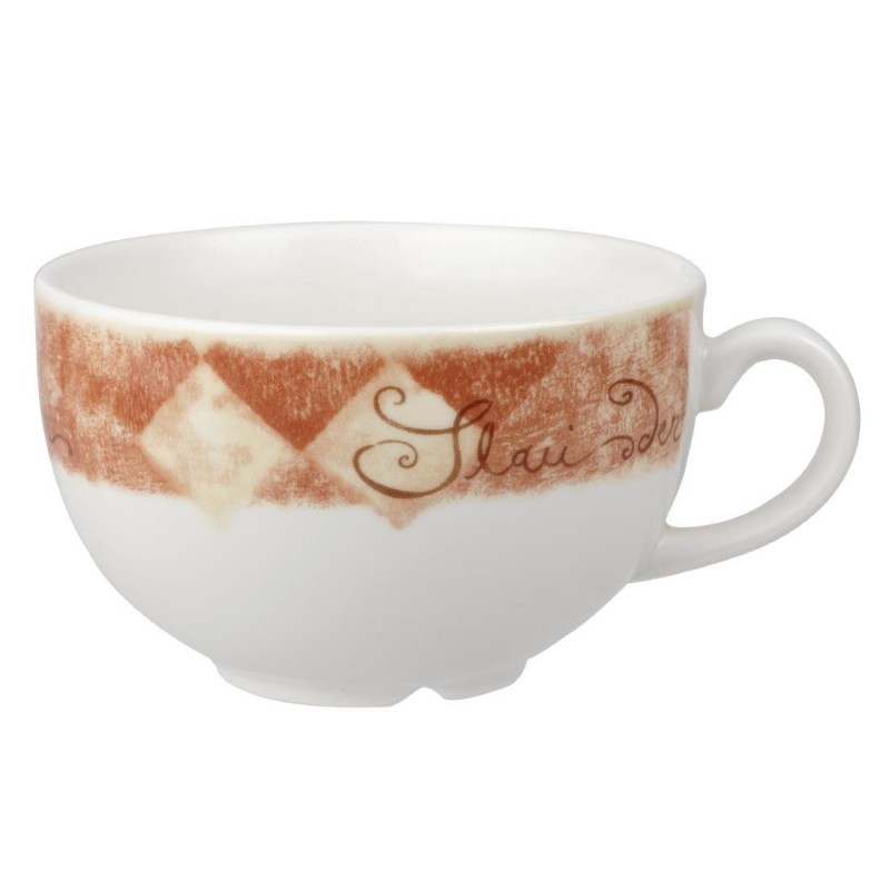 Create a welcoming atmosphere for your customers with the soft colours of Tuscany crockery designed exclusively by Jeff Banks. This 284ml cappuccino cup is decorated in rich warm tones of rustic browns and creams and is made from super vitrified porcelain offering excellent heat retention and has a superior glaze which resists the erosion caused by regular dishwashing.