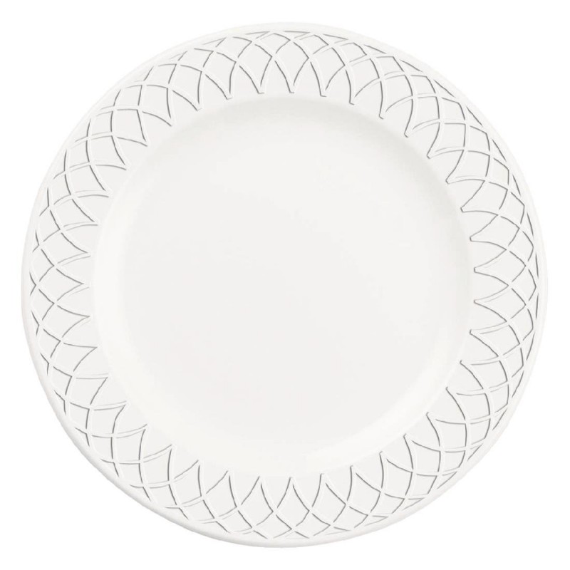 A fine china 11 ⅘" dinner plate from the Jardin collection by Churchill which embodies a timeless appeal enhanced by classic design. The delicate embossed border reflects the elegant arches of windows and brings a sophisticated ambience to the dining experience. The plate is ideal for all types of professional catering environments as the high alumina content of the china gives it maximum strength. Coupled with a superior glaze which is resistant to the erosion caused by dishwashing and damage caused by cutlery and a chip resistant rolled edge Jardin crockery can withstand the rigours of daily use and will stand the test of time.