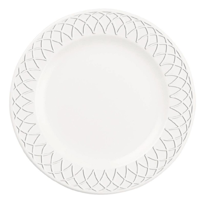 A fine china 9" plate from the Jardin collection by Churchill which embodies a timeless appeal enhanced by classic design. The delicate embossed border reflects the elegant arches of windows and brings a sophisticated ambience to the dining experience. The plate is ideal for all types of professional catering environments as the high alumina content of the china gives it maximum strength. Coupled with a superior glaze which is resistant to the erosion caused by dishwashing and damage caused by cutlery and a chip resistant rolled edge Jardin crockery can withstand the rigours of daily use and will stand the test of time.