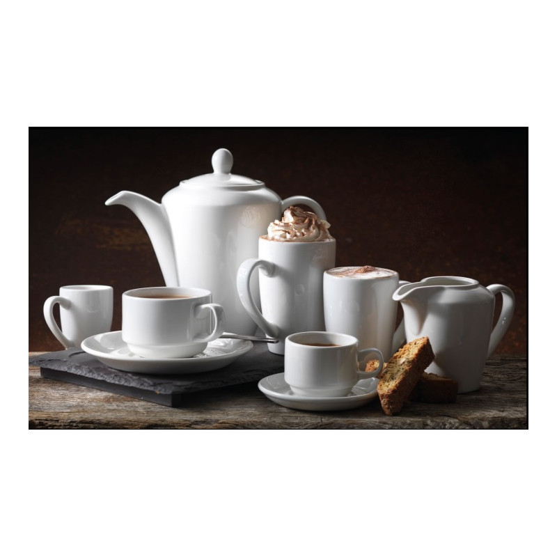 Combining excellent presentation with practicality Simplicity White is ideal for any casual dining occasion from hotel breakfast through caf lunch to pub dinner. This 170ml slimline cup complements all types of menu and food presentation by providing a versatile and simple backdrop. The cup is made from a strong and highly durable ceramic body making it easily able to withstand the trials of daily use is microwave dishwasher and freezer proof and has great heat retention for efficient service.
