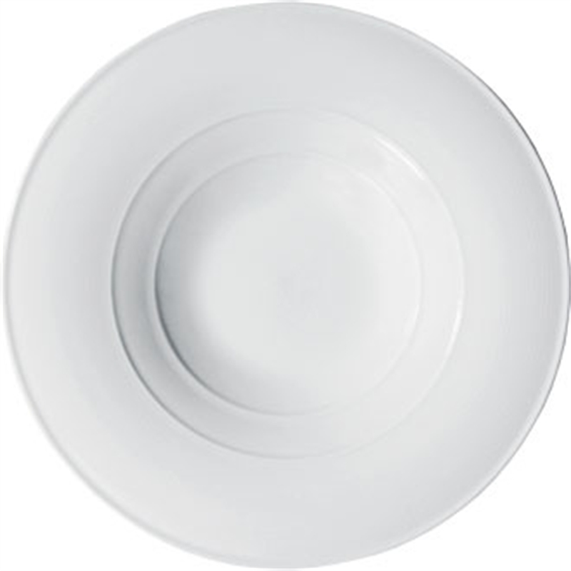 This porcelain 12 ⅘" broad rimmed pasta plate from the Aura collection creates a superb setting for fine dining adding a stylish emphasis to every dish. With a cool blue-white finish and durable reflective glaze Aura has been developed to meet the demands of modern food presentation combining contemporary design with classic practical features.
