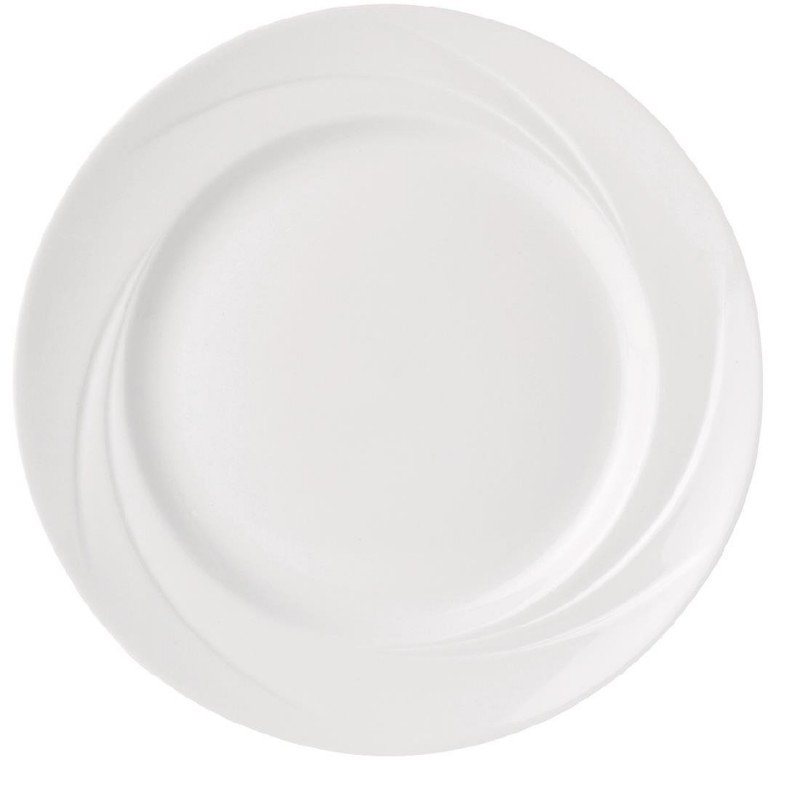 With flowing curves and a subtle embossment the Alvo crockery range assures outstanding food presentation to complement any cuisine.This 10 ⅝" Venitia dinner plate combines the pure white delicacy and translucence of finest china with exceptional durability with features including thermal shock and stain resistance and a robust glaze.