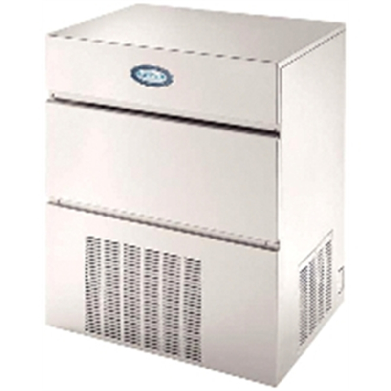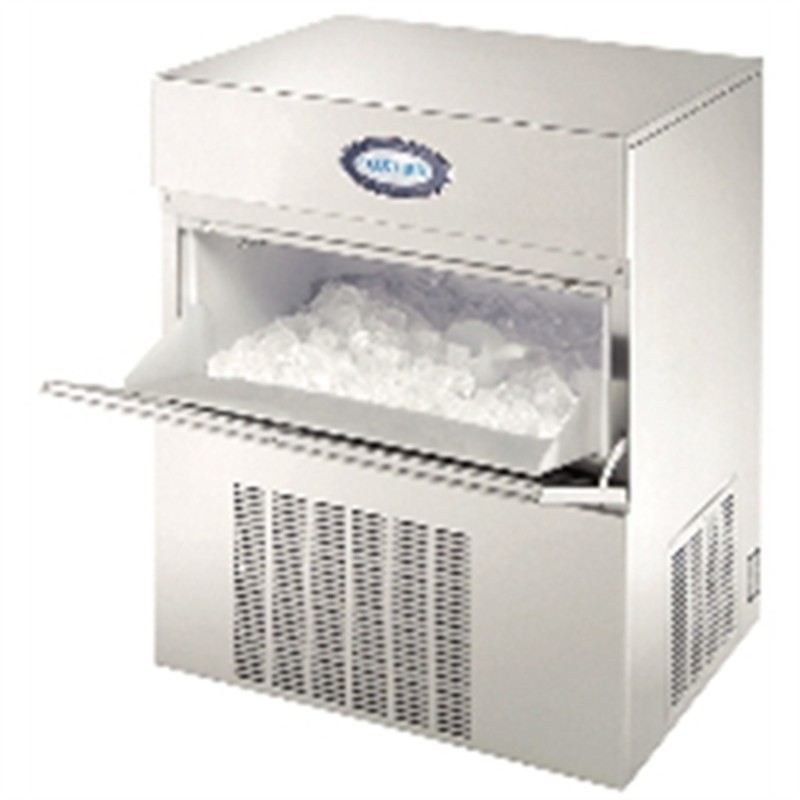 Foster ice machine produces ice at very low temperatures so ice cubes are harder and last longer. Capacity output of 83kg.