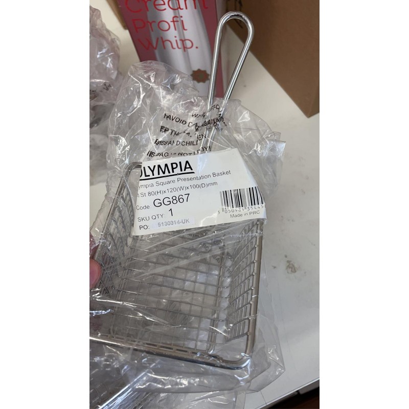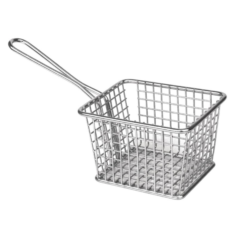 Unique and quirky square shaped stainless steel presentation baskets these are perfect for serving larger side orders such as chips or tapas. These baskets are dishwasher safe and will add that little something different to your establishment.