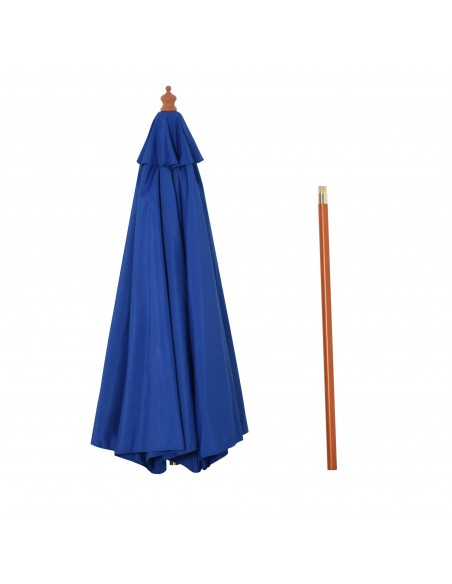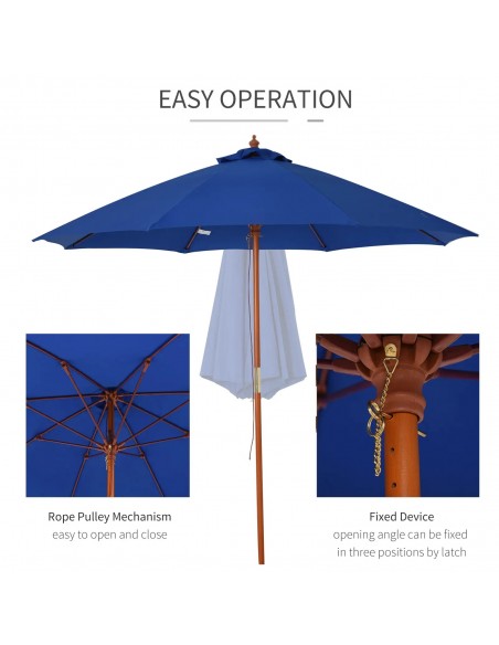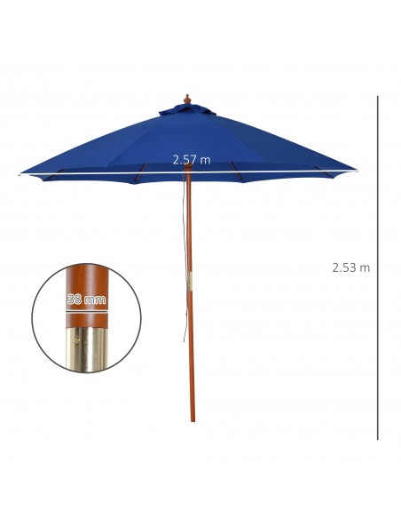 Round Parasol 2.5m Diameter Blue, Outdoor Table Umbrella with Wooden Pole & 8 Fibre Glass Ribs