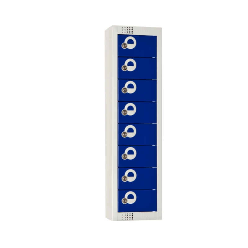 Eight door lockers designed for use off floor. Anchor against a wall on a load bearing raised platform. Ideal for the storage of all personal effects including watches personal jewellery wallets purses and mobile phones.External dimensions:990(H) x 250(W) x 160(D)mmInternal dimensions per compartment: 165(H) x 75(W) x 135(D)mm
