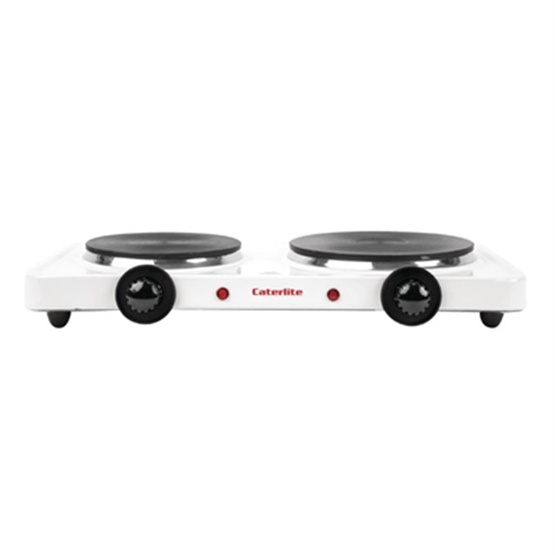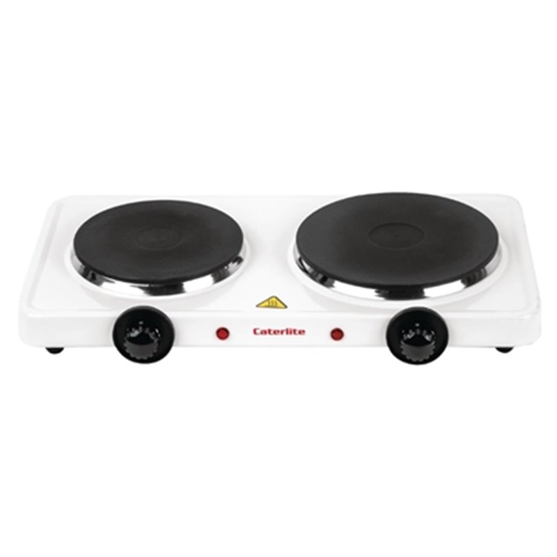 This compact high output Caterlite double countertop boiling ring comes with a range of useful attributes including its non-skid rubber feet and safety cut-out. The hob is suitable for frying boiling and searing as well as reheating food making it an ideal extra heat source for a busy commercial kitchen. Its thermostatic control and clearly marked on/off indicator light makes it highly convenient to use and demonstrates its operational reliability perfectly illustrating the versatility all professional chefs look for in cooking appliances.