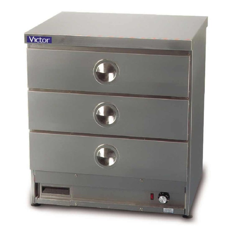 Heated drawers for storing hot food in advance of service. Food is kept in GN containers in each drawer which have hot air circulating and an integral water tray at the base of the unit. Please note: must be positioned under a bench or fixed position to prevent tipping.
