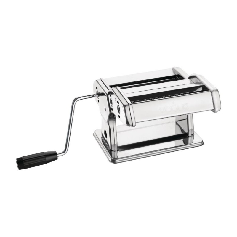 This chrome plated steel pasta maker features nickel plated rollers. Dough can be made in various thicknesses and two widths. This simple to use hand operated machine will produce professional quality pasta every time.
