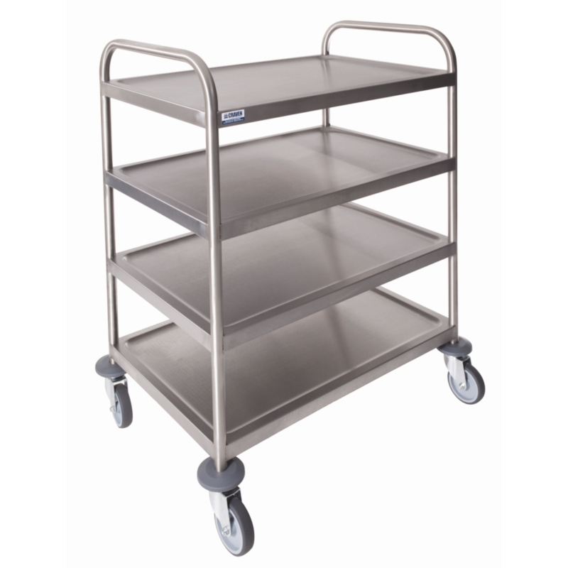 A stainless steel general purpose Craven trolley with two braked and two swivel 5" castors.
