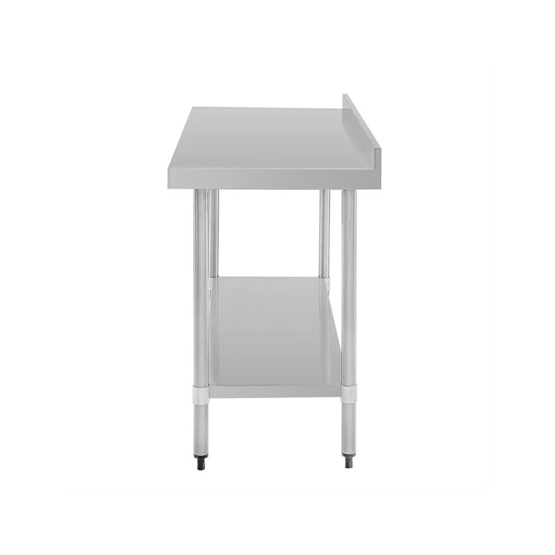 This 1200mm wide high quality table provides an excellent foundation for any kitchen. Practical reliable and great value it can be used to a whole host of tasks. Height adjustable for comfort complete with galvanised steel undershelf and legs. Also supplied with upstand. The Vogue stainless steel prep tables feature an upstand, making them ideal for installation against the wall, stopping any food or utensils from falling down behind or splashing of food where it is hard to clean. The 700mm deep prep tables are made from 430 stainless steel, offering a strong and polished surface which can be wiped down quickly and with ease for best hygienic practice